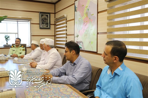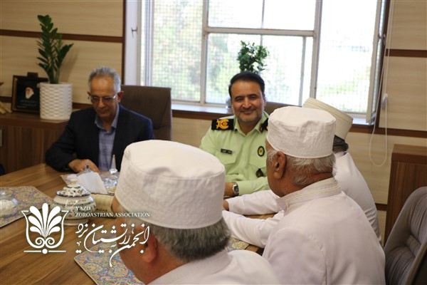 در روز پنجشنبه ۱۷ مهرماه ۱۴۰۴ برابر با دی به دین ایزد و مهرماه ۳۷۶۳ زرتشتی، جمعی از روسای انجمن های زرتشتیان یزد با همراهی نمایندگان انجمون موبدان و موبدیاران، به دیدار سردار احمد نگهبان، فرمانده محترم نیروی انتظامی استان یزد رفتند.