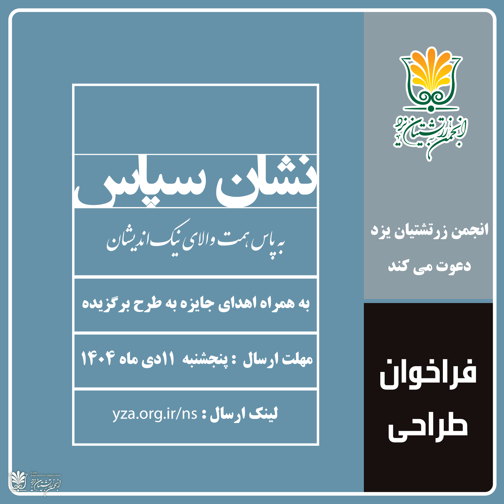 انجمن زرتشتیان یزد در نظر دارد، برای سپاسگزاری از نیکاندیشان و خیراندیشانی که این انجمن را یاری میکنند، “نشان سپاس” اهدا نماید. از اینرو از طراحان و علاقه مندان دعوت می شود تا جهت طراحی این نشان این انجمن را یاری رسانند.